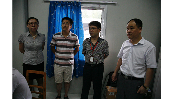 在平安合肥項目現(xiàn)場走訪慰問時,王曉龍書記代表公司領導班子向正在烈日下?lián)]汗如雨忙碌的同事表示了親切的慰問和感謝,送上了防暑降溫用品。王書記詳細了解了平安合肥項目外場工作的進展情況并親切詢問了大家的作息時間和生活情況,對一線員工不畏酷暑,兢兢業(yè)業(yè),依然堅守在一線的高度責任感和踏實肯干的工作精神給予了高度的贊賞,同時囑咐相關負責人要落實好防暑降溫工作,避開高溫時段,錯時施工,確保一線員工安全度暑和各項工作的有序開展。