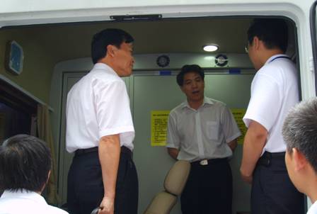 鄭局長(zhǎng)在雷達(dá)車(chē)內(nèi)參觀檢查